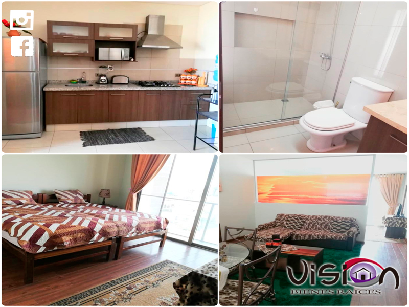 PRÓXIMO JUAN DE LA ROSA MELCHOR garzoneir completamente amoblado consta de: 1 suite, living comedor, cocina, baño, jardin, piscina y parrillero Bs. 2.200 Ref. 4526283-71733363 (AG-296)
