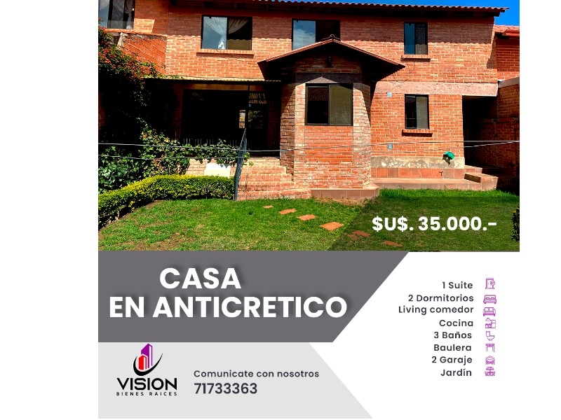BONITA CASA EN ANTICRETICO 330M2 SUITE 4 DORMITORIOS PROXIMO SEGIP $us 50.000.- 4526283-71733363(AC-494)